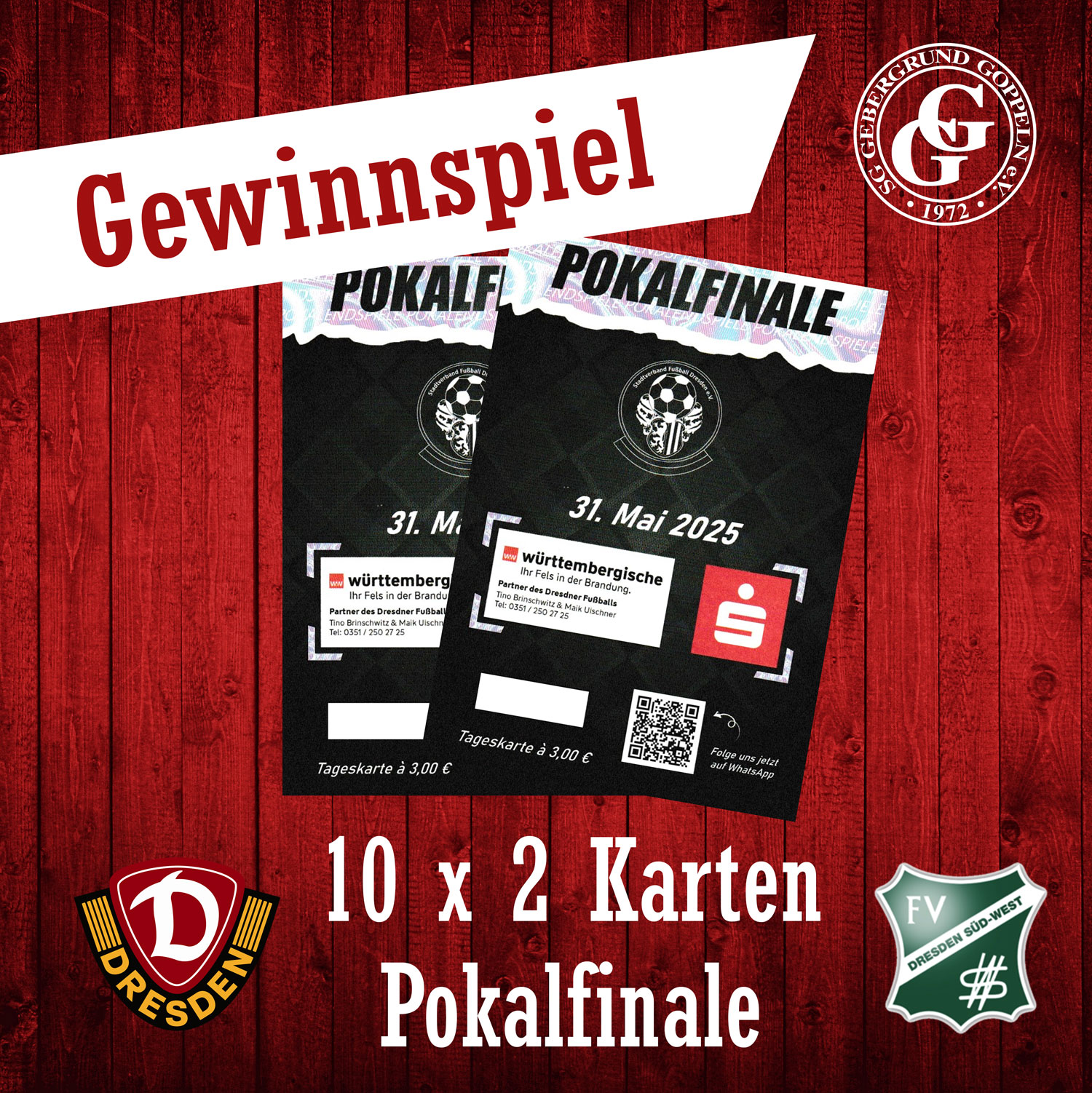 Für die Pokalfinals am 31.05.25 unserer Frauen (12 Uhr gegen Dynamo Dresden) und unserer U19 (14:30 Uhr gegen Dresden-Süd-West) verlosen wir 10 x 2 Freikarten.